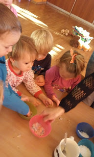 Dzisiaj na zajęciach dzieci wykonały pracę plastyczną i pokolorowały ciasteczka świąteczne według wzoru, a później udekorowały prawdziwe ciastka kolorowymi posypkami. Wszyscy bardzo dobrze się przy tym bawili i z ochotą kosztowali swoich kolorowych ciasteczek.